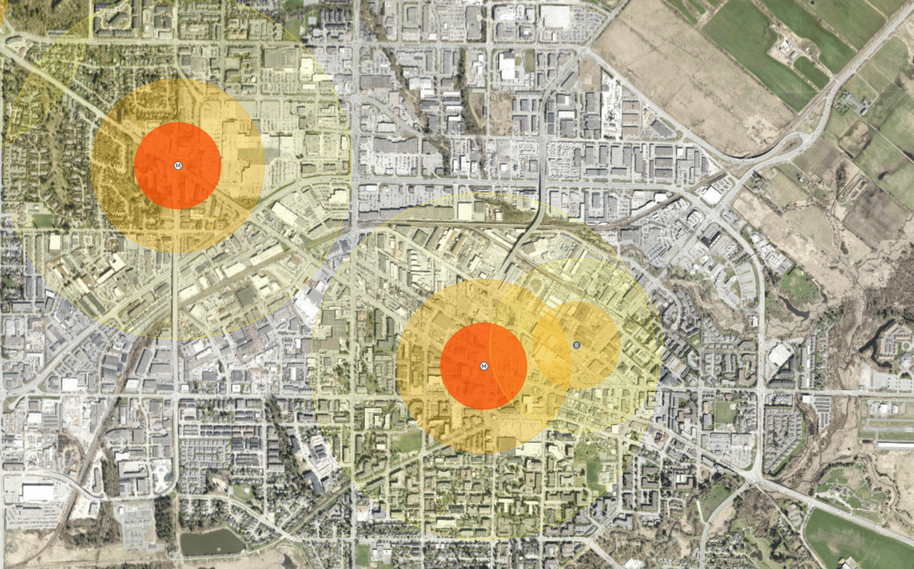 Throughout this piece, we have used an online app created by Langley resident Josh Messmer to envision and predict the scope of the Fraser Valley’s transit-oriented development area. You can use the app yourself here.