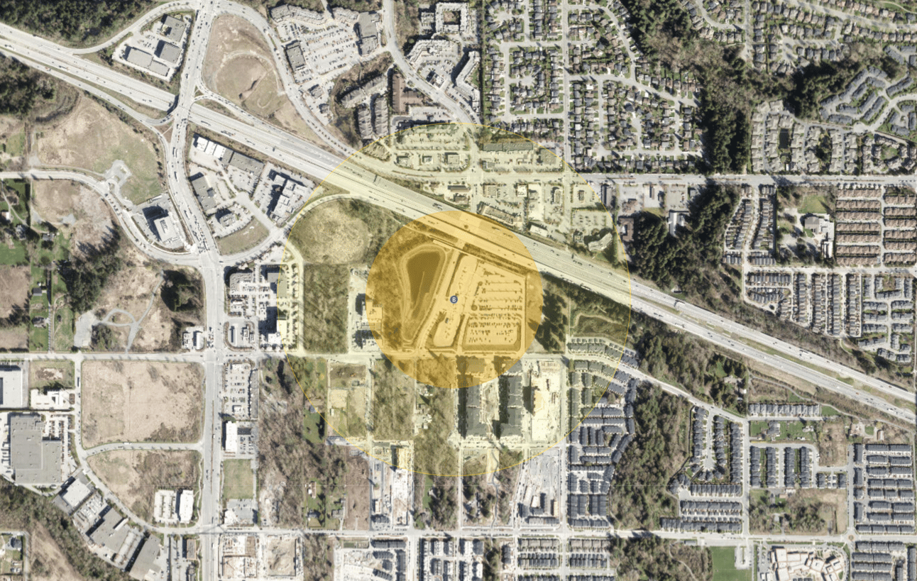 To the north, in Langley Township, the Carvolth Bus Exchange will also trigger a new transit-development area. Much of that area has already seen recent developments that are unlikely to come down soon. The tight radius surrounding the exchange also includes a stormwater detention pond and Highway 1.