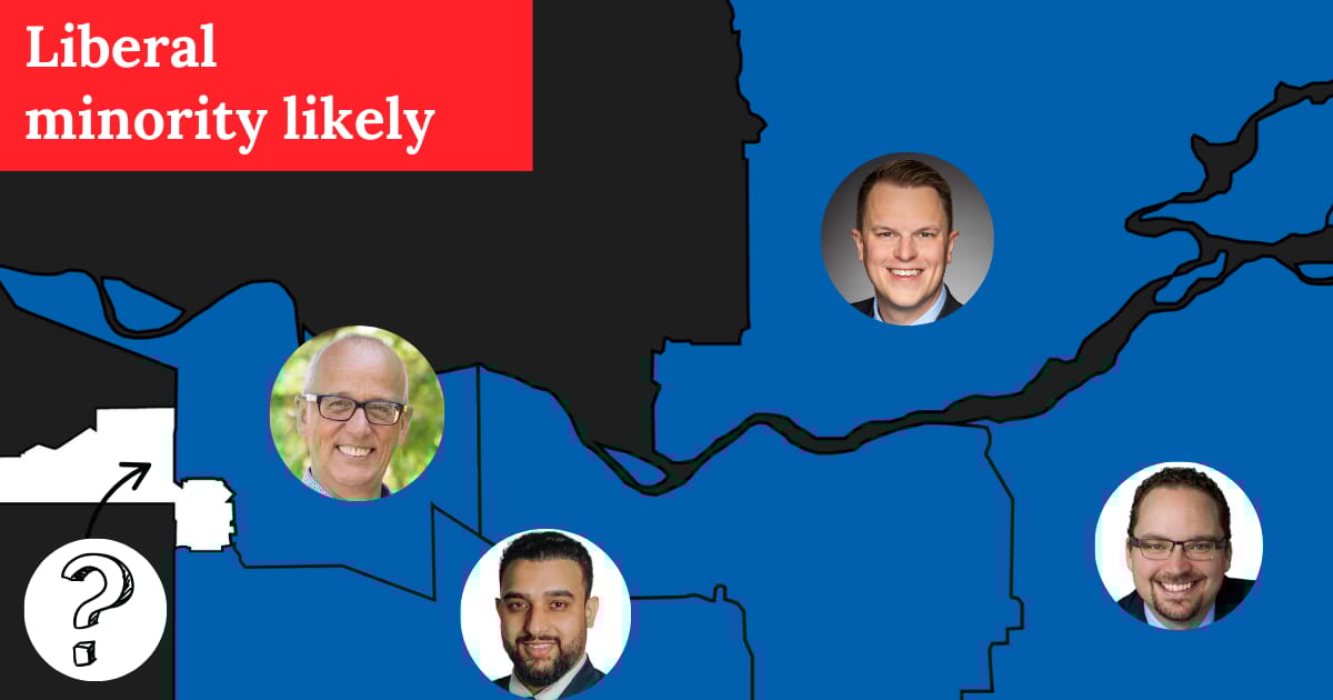 As of 1am Tuesday, the Conservatives were set to sweep the Fraser Valley, even as a Liberal minority government looked likely. 🗺 Grace Kennedy