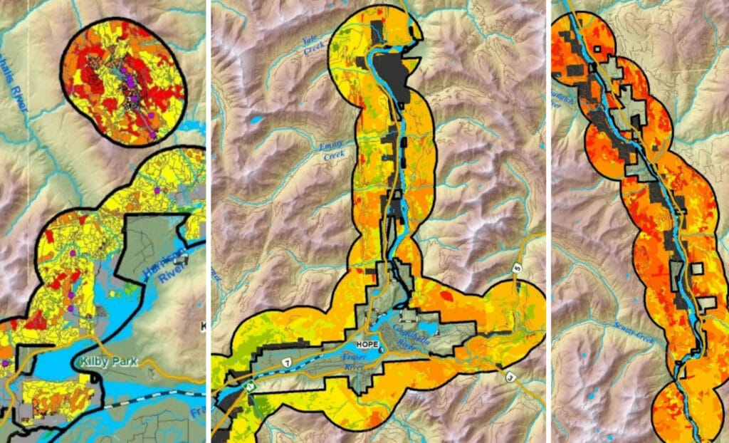The FVRD has more than 1.4 million hectares of land. About 5.4% of land is agricultural, about 1% is used for cities and towns, and most of the rest is forested mountainous terrain. The region has well over one million hectares of forest. In 2020, a consultant for the FVRD mapped the fire threat near rural structures and roads in the region and declared at least 5,000 hectares to be an “extreme” threat. See fire threat maps for three risk areas here. The full reports can be found here: Zone A (Hope/Fraser Canyon) | Zone B (Harrison Mills to Hatzic Valley) | Zone C (Popkum/Chilliwack River Valley/Cultus)
