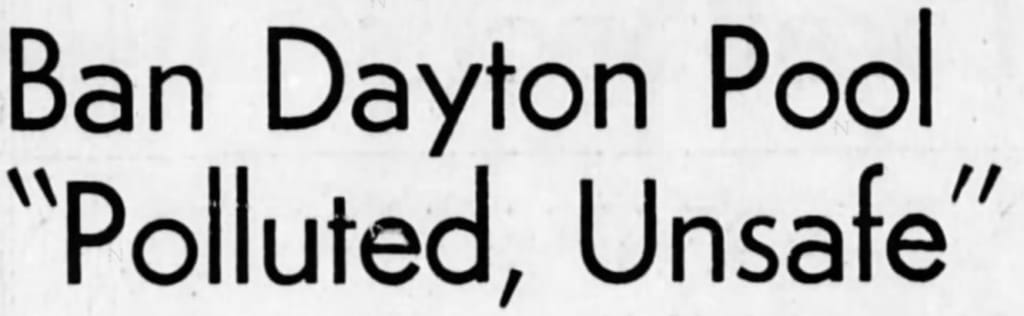 In 1959, Dayton’s Pool was declared “polluted and unsafe” and health officials posted signs declaring: “Warning! Dayton Pool has been condemned by the Medical Health Officer. Users do so at their OWN RISK.”