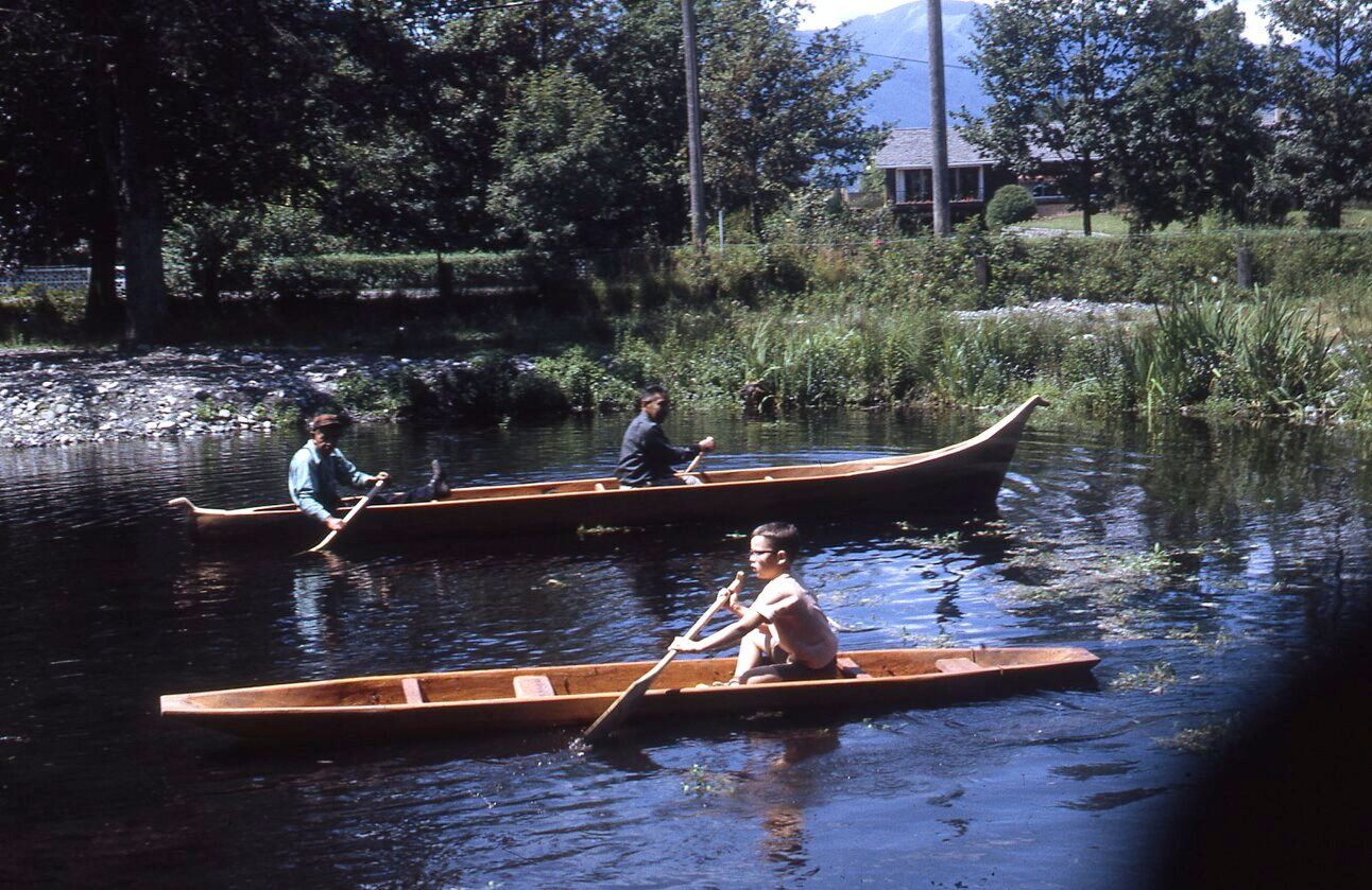 A 2004 photo belonging to the Chilliwack Museum and Archives shows a young boy paddling a shovel-nose canoe alongside a more-traditional boat.