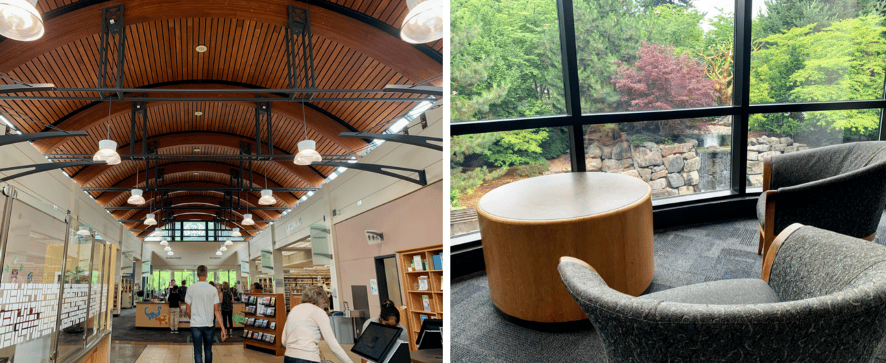 The library itself has high ceilings and big, arching windows. It’s the busiest library in the Fraser Valley Regional Library system. (Insider members can see how each library stacks up in a coming edition of the newsletter.) There’s a reading nook that looks out onto a pond and fountain. After checking out Carrie Soto is Back by Taylor Jenkins Reid (I can return it at the library branch near my house), I walk through the small, tidily wooded area surrounding the fountain and learn that it’s the International Friendship Garden. At its heart is a sculpture of a great golden tree, a monument to migrant farm workers who died in 2007 when the poorly maintained vehicle they were being transported in crashed.