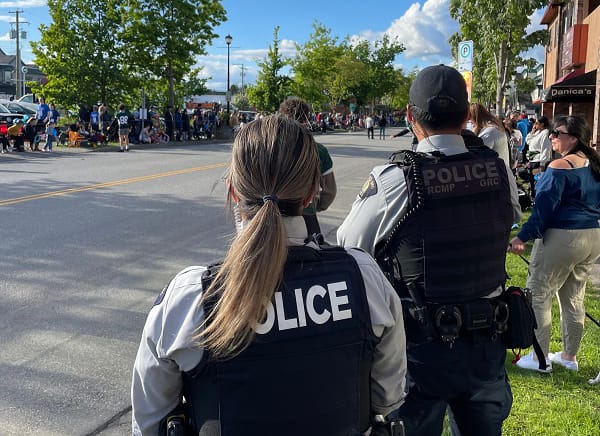 Surrey RCMP officers, like these members watching the Cloverdale bed races, will be looking to transfer to other RCMP departments as the Surrey Police Service takes over that municipality. 📷 Surrey RCMP/Facebook