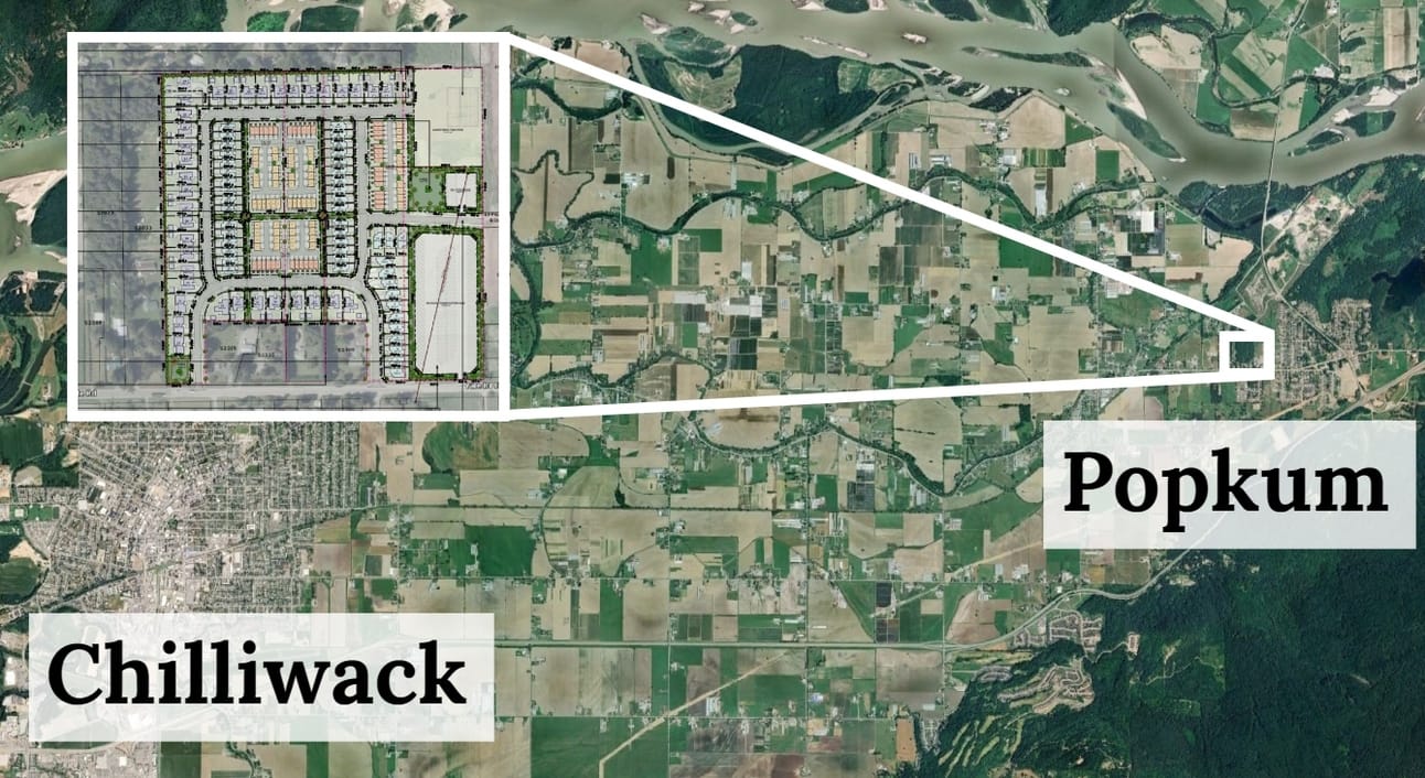 A developer hopes to build more than 250 homes on a 15-hectare property in Popkum, on the City of Chilliwack’s eastern border.
