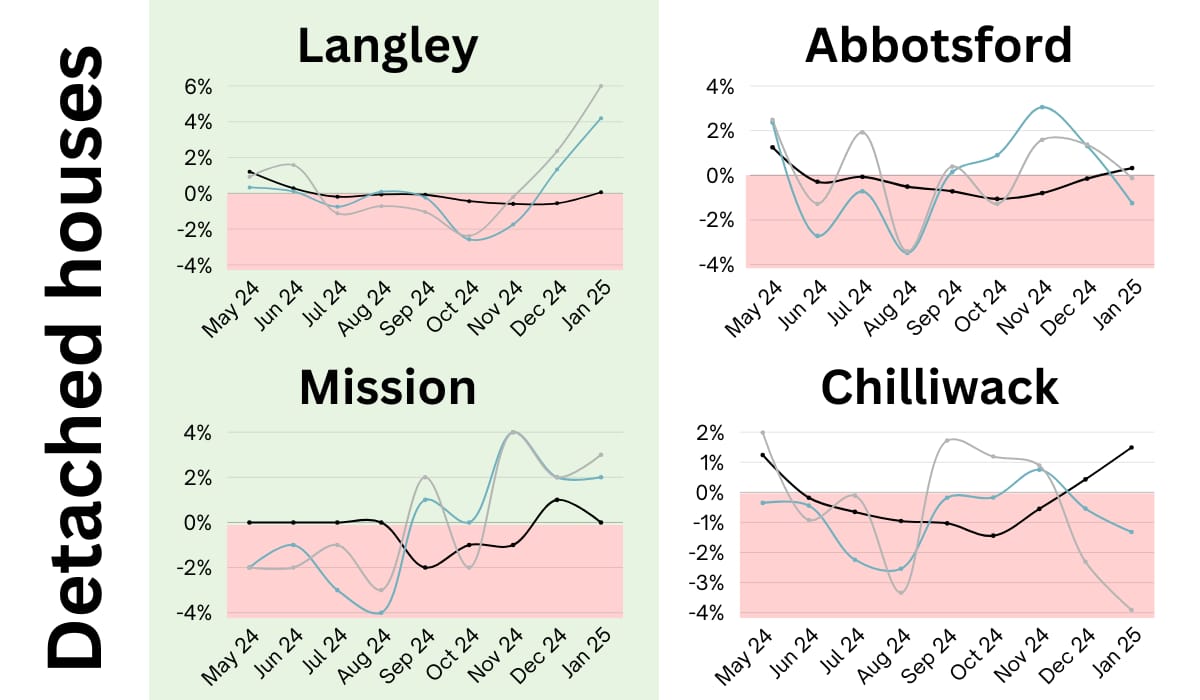 After a months-long decline, there are indications that Fraser Valley housing prices are rebounding. But across the region, the demand for homes is dramatically lower than 12 months ago.