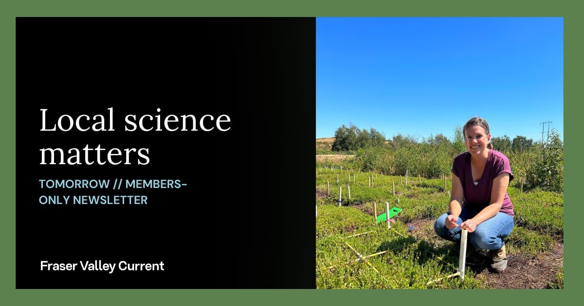 In tomorrow’s members-only newsletter, Grace writes about Fraser Valley scientists and why reporting on research is an important part of local news. We’ll also share which month our FVC Insiders love the most.