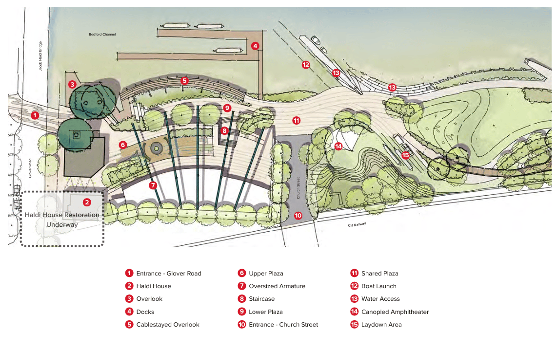 The $4 million Haldi House restoration was approved by council in April. The revitalized heritage building would form the anchor for a new plaza at the western edge of the property.
