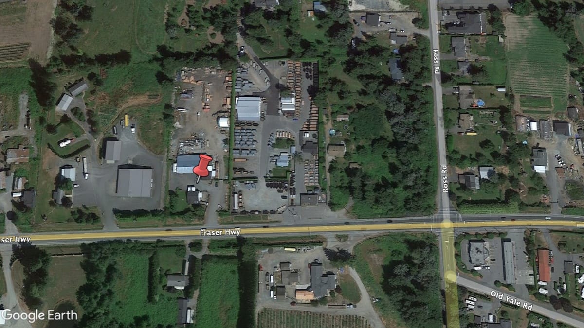 The owner farm property near Fraser Highway and Ross Road wants Abbotsford council to approve its use for truck parking. | Google