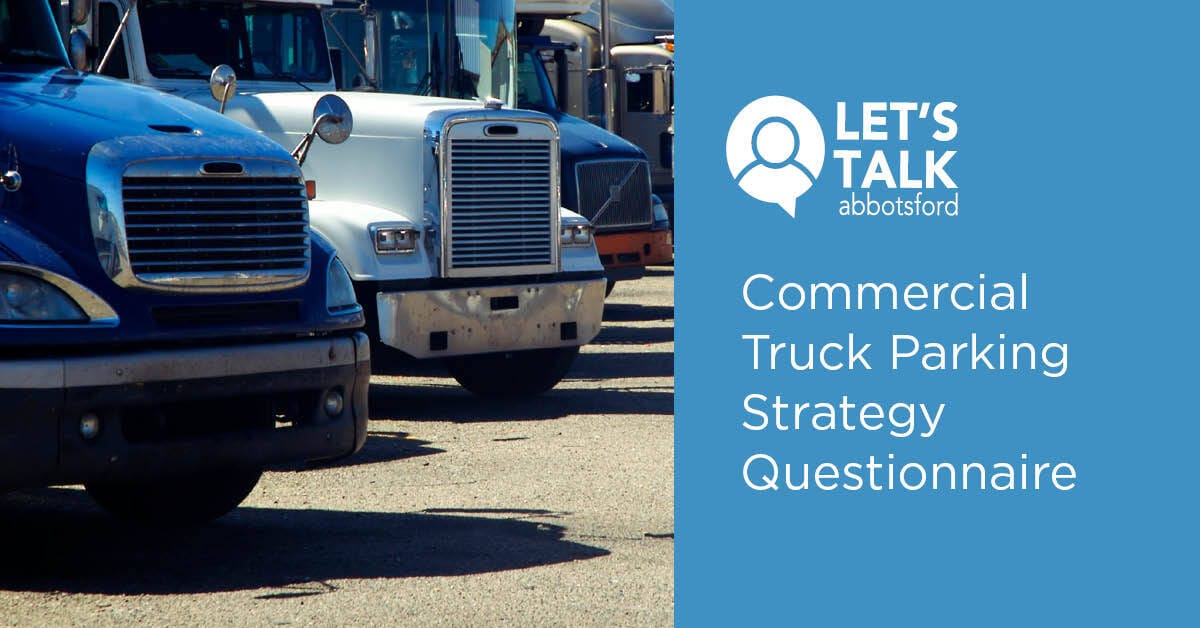 We’d love your input on Abbotsford’s updated Commercial Truck Parking Strategy! View the 5 proposed strategies online and then take our quick questionnaire to provide your feedback.