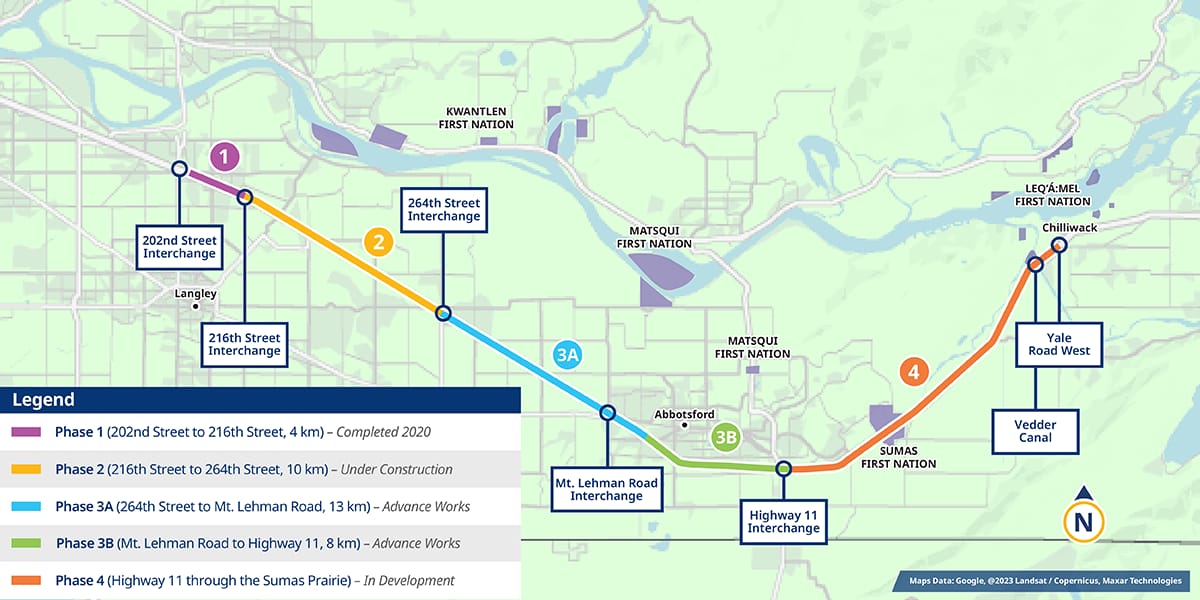 Chilliwack MLA and Minister of Transportation Dan Coulter also commented on the widening, saying the province has full funding for construction between 216th Street and Mt. Lehman, and that pre-works have been done between Mt. Lehman and Highway 11. He added, as he said in his interview with the Current last year, that the 2021 flood complicated the widening to Chilliwack as “we can’t have a nationally significant corridor under two or three feet of water ever again.”
