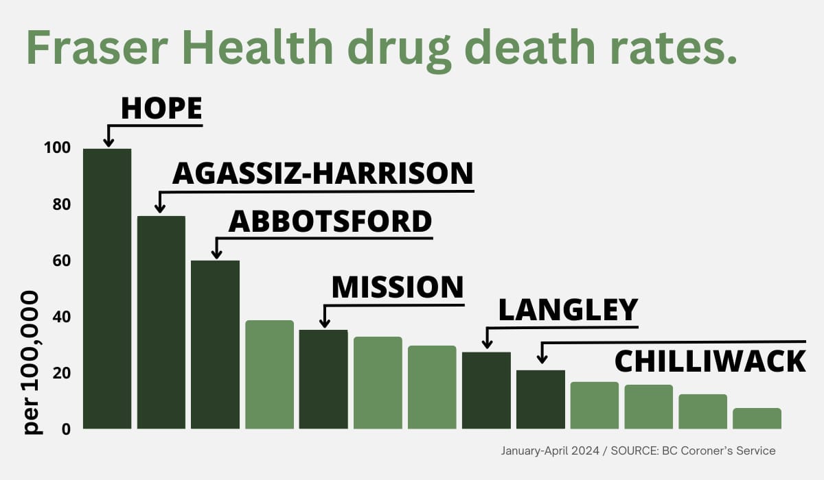 Hope continues to have highest drug death rate in Fraser Health