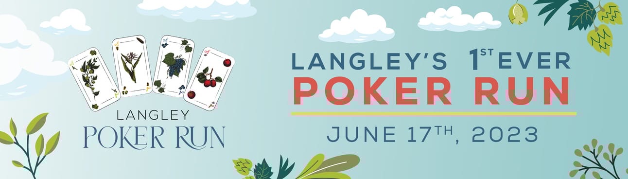 Langley Poker Run hosted by The Fraser Valley Cider Company, Roots and Wings Distillery, Locality Brewing, and Valley Commons Winery on June 17, 1-6pm.