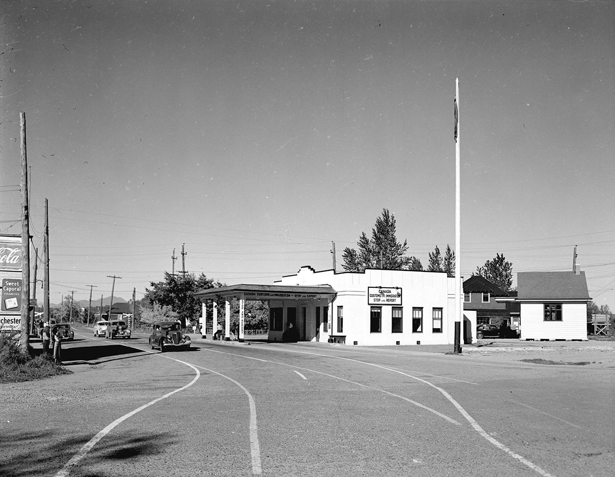 The Canadian Customs and Immigration building at the Sumas-Huntingdon crossing in 1949. 📷 Vancouver Archives AM1545-S3-: CVA 586-111.01