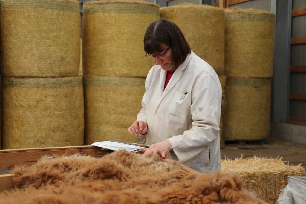 A fiber’s diameter, measured in microns, determines the grade of a fiber sample. (One micron is equal to one millionth of a metre.) But Merkley doesn’t need to use a magnifying glass.