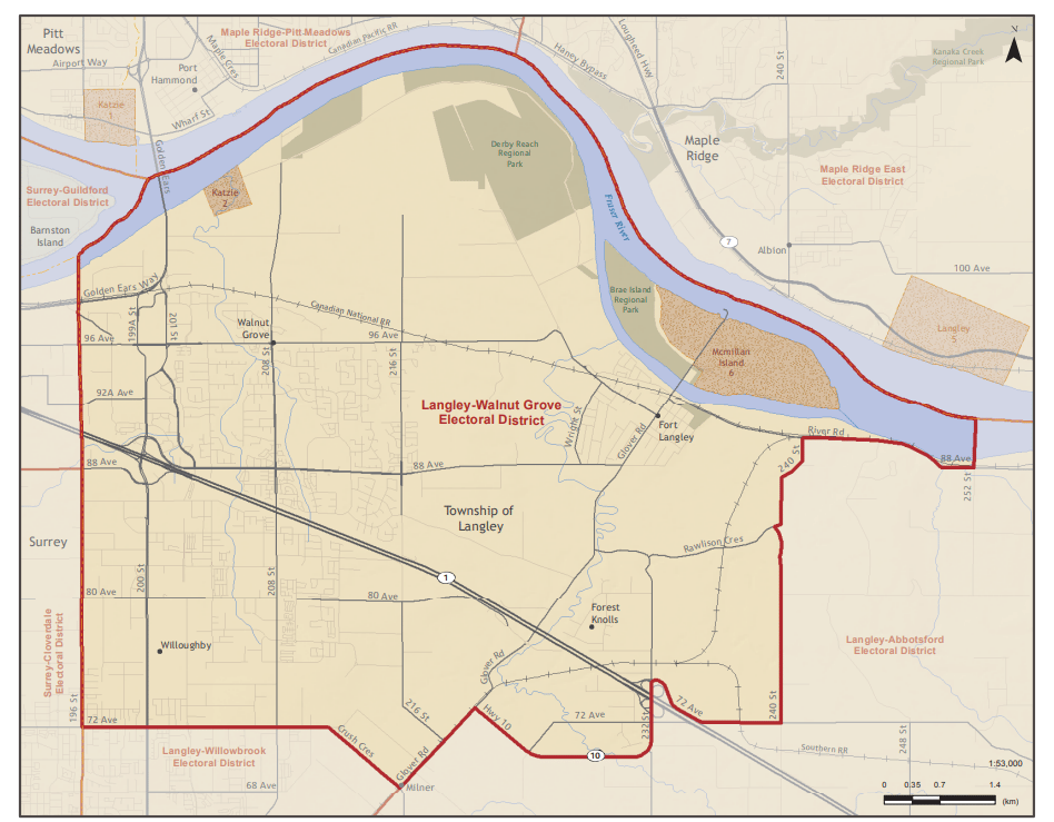 Riding: Langley Township north of 72 Ave, including Walnut Grove and Fort Langley. Map.