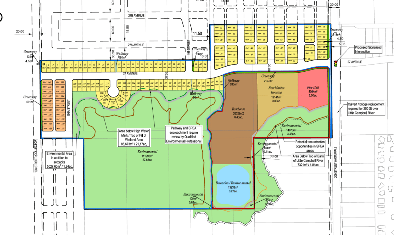 While the earlier version of the Fernridge Neighbourhood Plan envisioned an elementary school and a field sandwiched between the Horne Pit wetlands and 200th Street, Langley’s revised plan turns that land over to nature instead. (A school would be built south of 24 Ave instead.)
