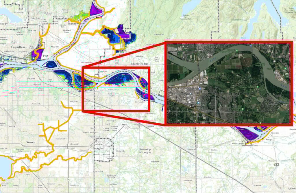 This is the second of three stories on the annual flood risk in the Fraser Valley’s biggest cities. We also examined the Fraser’s flood danger in Chilliwack and Abbotsford. Find those stories here: Chilliwack | Abbotsford. We also wrote about the threat to Mission’s waterfront here.