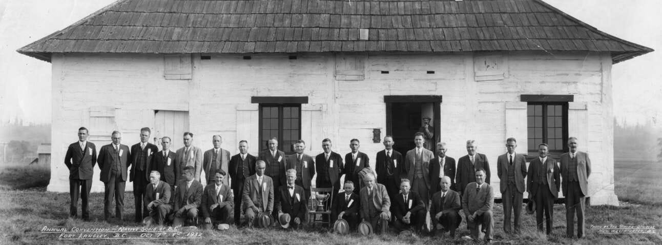 The Native Sons of British Columbia outside Fort Langley’s cooper’s shop in 1932. 📷 Vancouver Archives AM463-S3-: CVA 465-05
