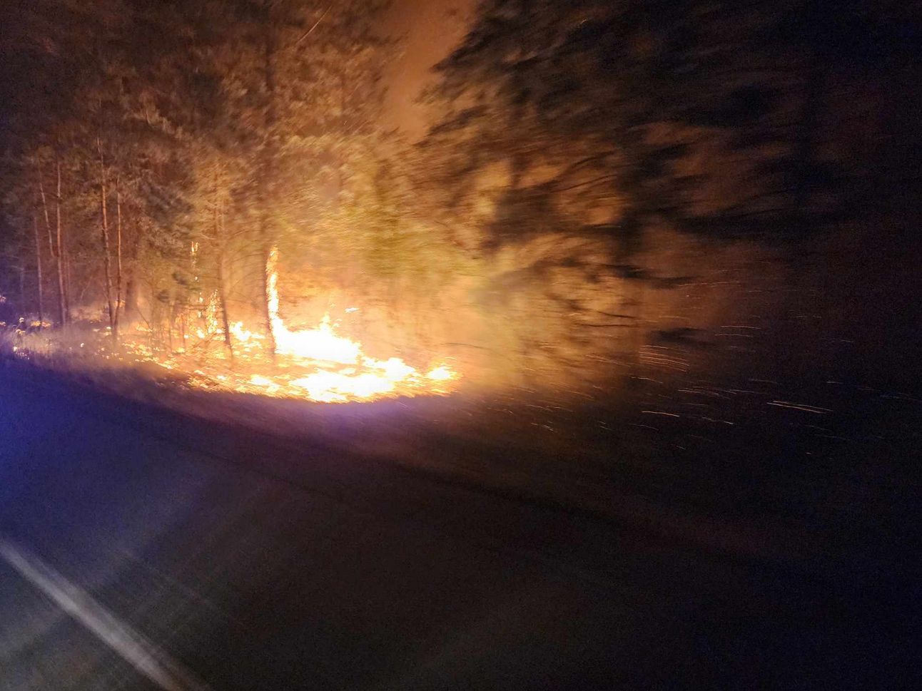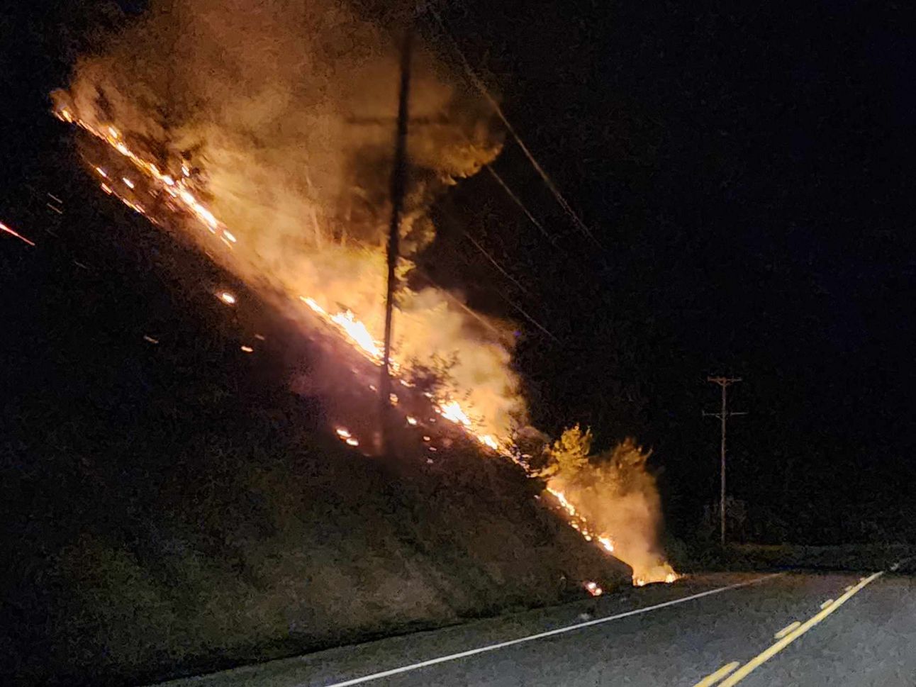 Photos sent to The Current by firefighter Jerry Michell show flames burning land next to Highway 1.