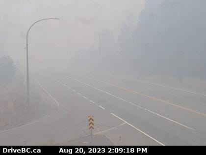 A BC Highway camera positioned at Boothroyd First Nation, just south of a nearby airstrip showed extremely smoky conditions in the area as of Sunday afternoon. The camera updates every 10 minutes and can be found here.