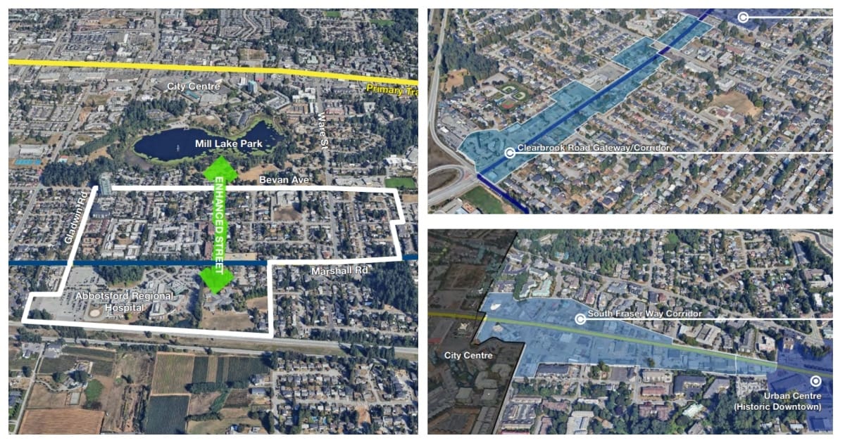 Planners are considering whether Abbotsford should allow larger buildings along Clearbrook Road and south of Mill Lake. 🗺 City of Abbotsford