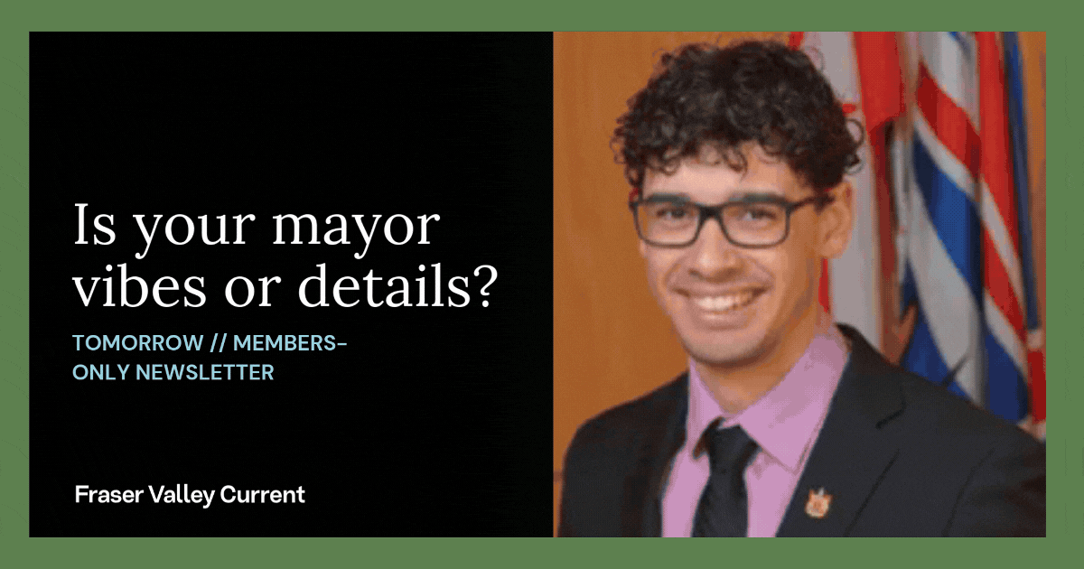 In tomorrow’s members-only newsletter, Tyler reveals which Fraser Valley mayors we think rely on vibes and passion, and which focus on details and process. He’ll also share what Insiders have to say about their mayor’s approach.