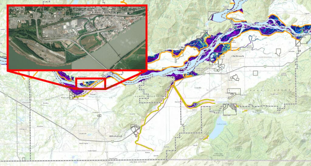 In Mission, though, even a more moderate flood could be disastrous. The city’s easternmost dike protects dozens of businesses and is predicted to be one of the first to fail in case of a moderate Fraser River flood. While a one-in-100-year flood might be limited to outlying areas in Abbotsford or Chilliwack, it would submerge most of Mission’s industrial waterfront area, according to modelling. And that’s before taking climate change into effect.