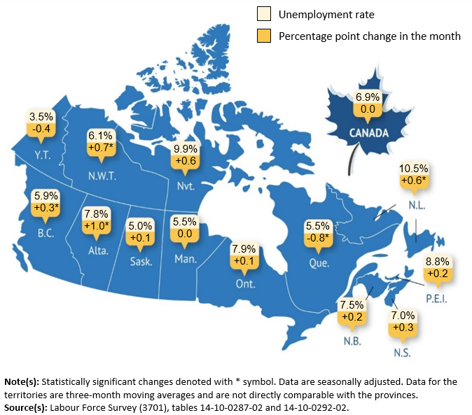 Unemployment map of Canada. 📸 Statistics Canada