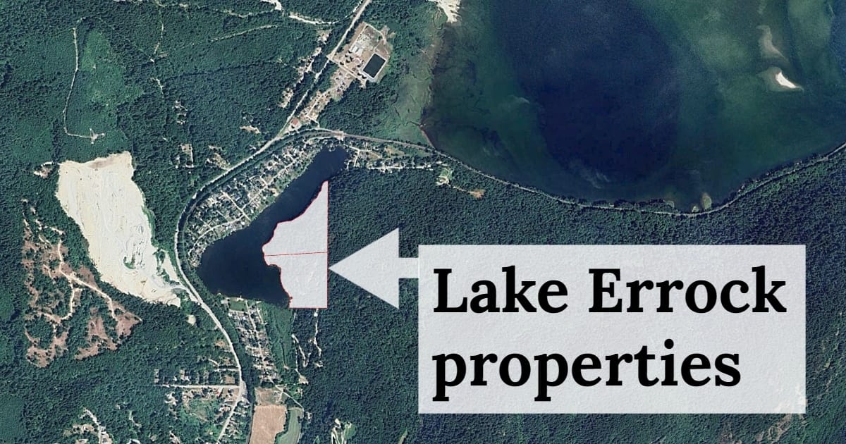 The two properties occupy much of the eastern shore of the small lake. Although two small buildings sit on the properties, the majority is densely forested, according to Assessment BC records.