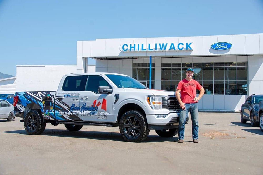 Although Nancy and her husband moved from Cultus Lake to the Shuswap in 2019, they have returned to Chilliwack to watch Reece’s Olympic competition. They also brought their son’s truck—a pickup covered in images of him skiing—to his sponsor, Chilliwack Ford, to be on display.