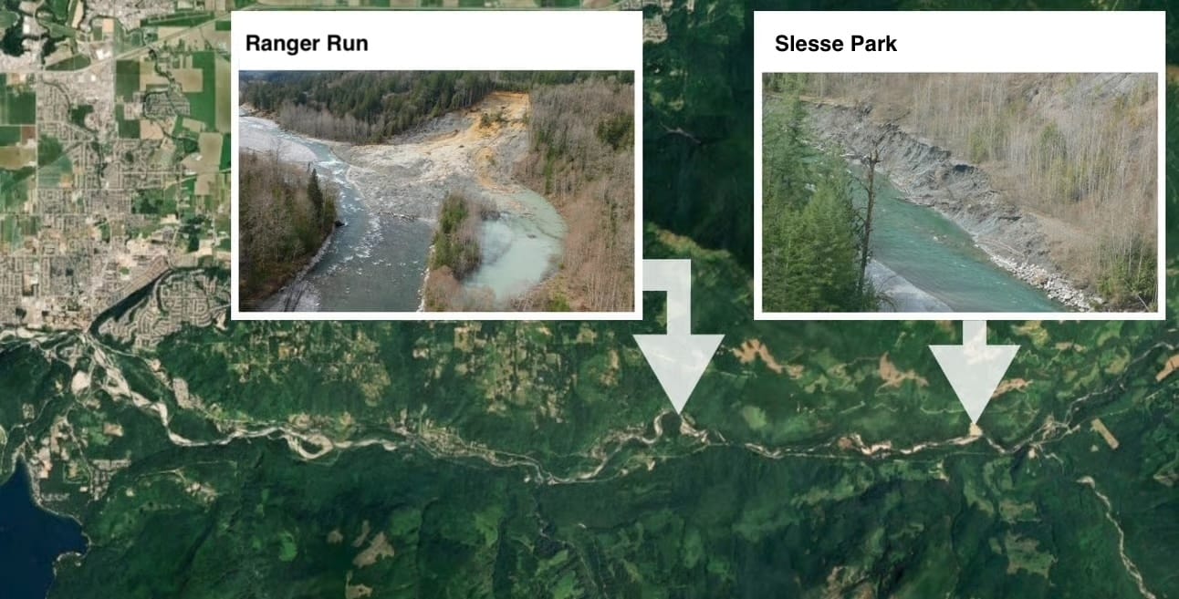 A new report analyzes the risk posed by two historic landslides in the Chilliwack River Valley. 🗺 Tyler Olsen