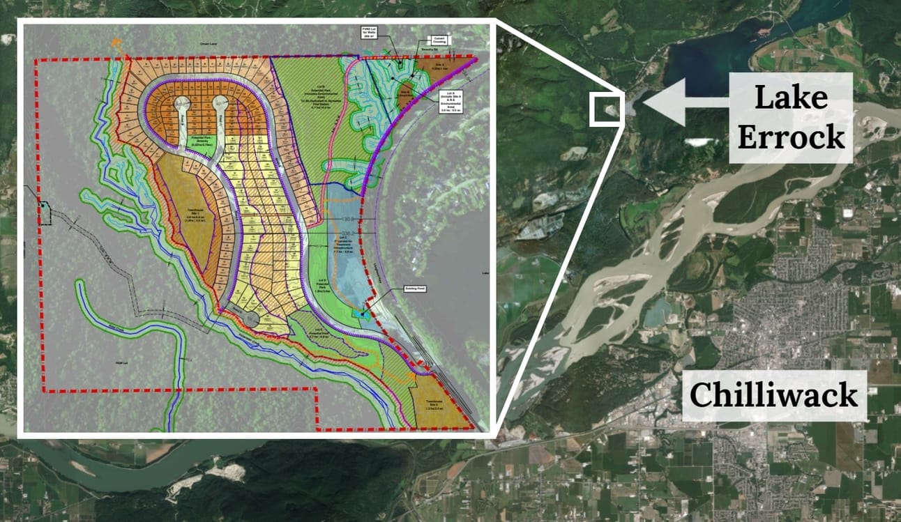 A public information meeting will be held Tuesday on a large proposed development near Lake Errock. 📷 FVRD/Bing Maps