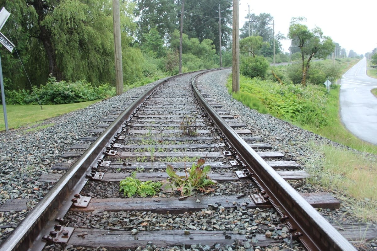 The interurban tracks connecting Abbotsford and Chilliwack take a circuitous route south of Sumas Prairie. 📷 Tyler Olsen
