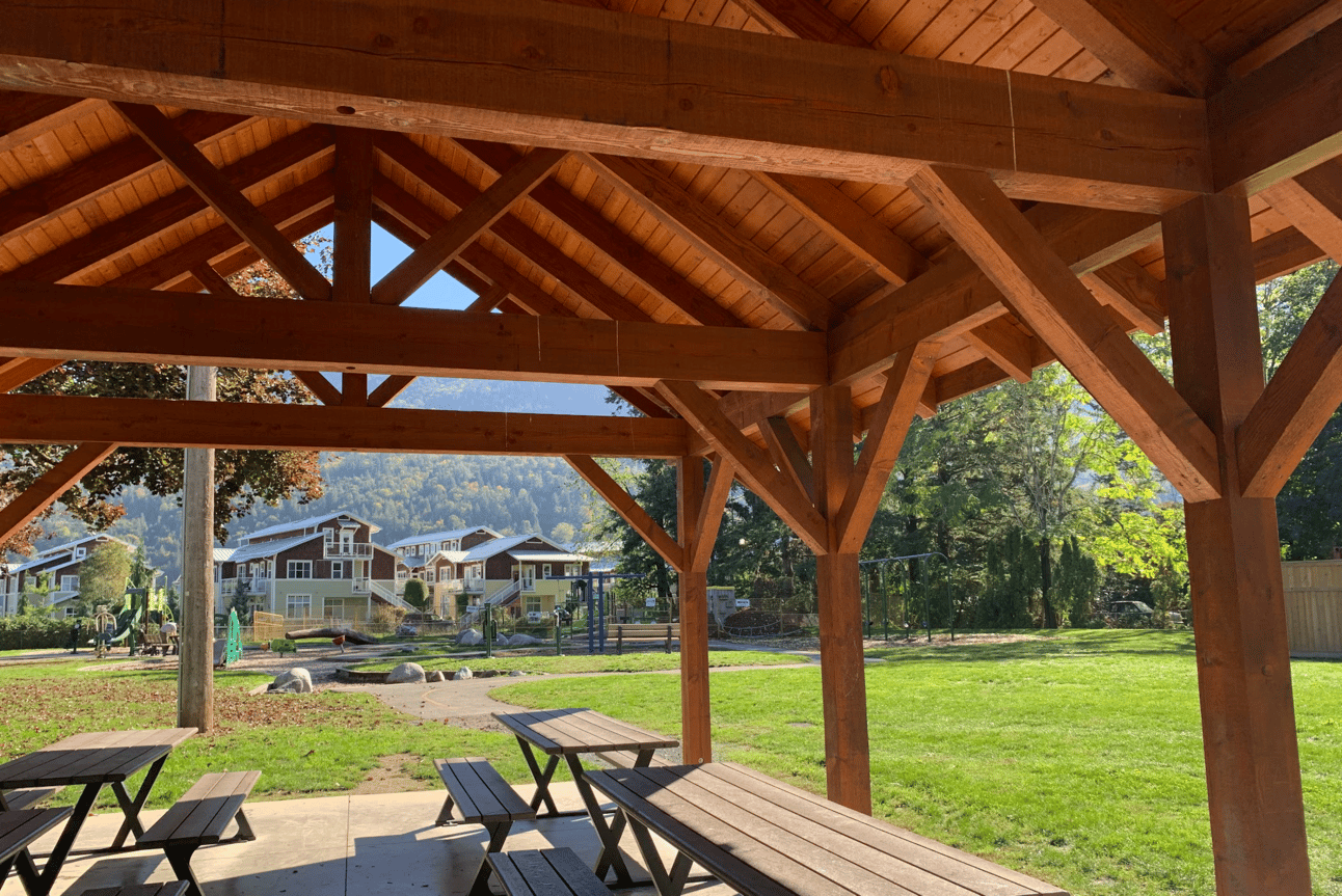 The picnic shelter at Yarrow’s Pioneer Park faces the playground. 📷 Grace Giesbrecht